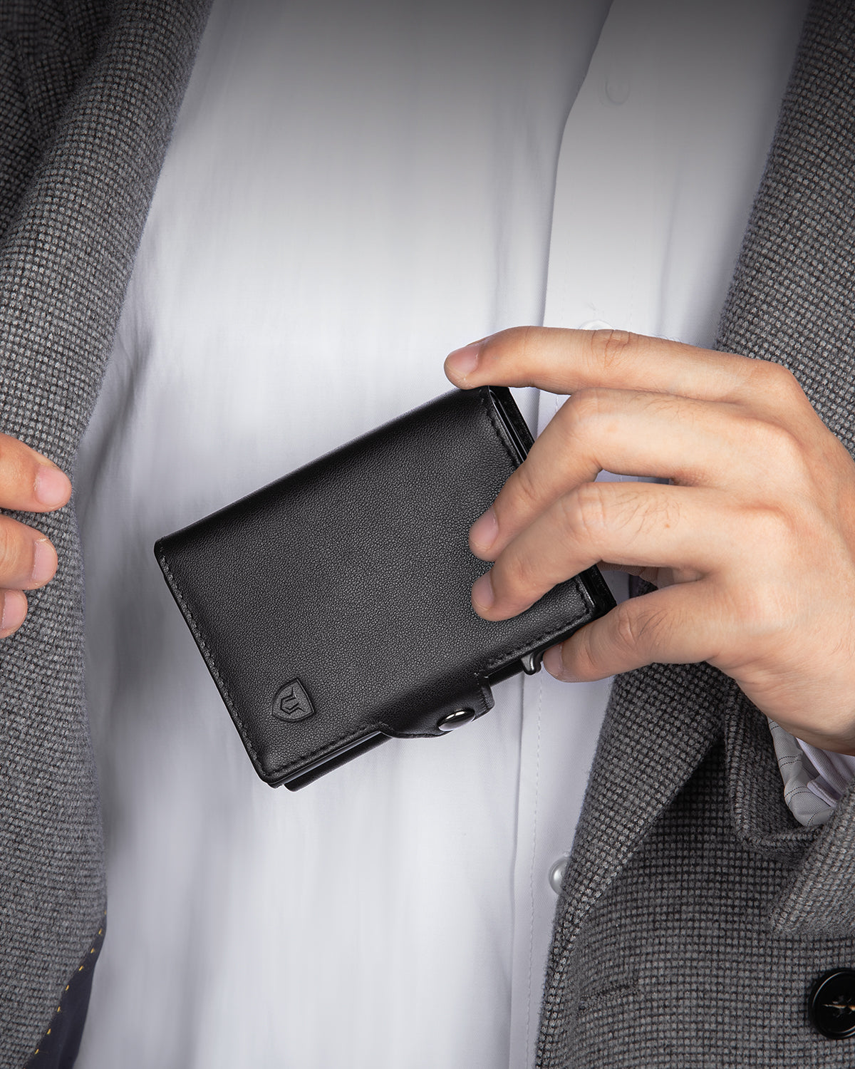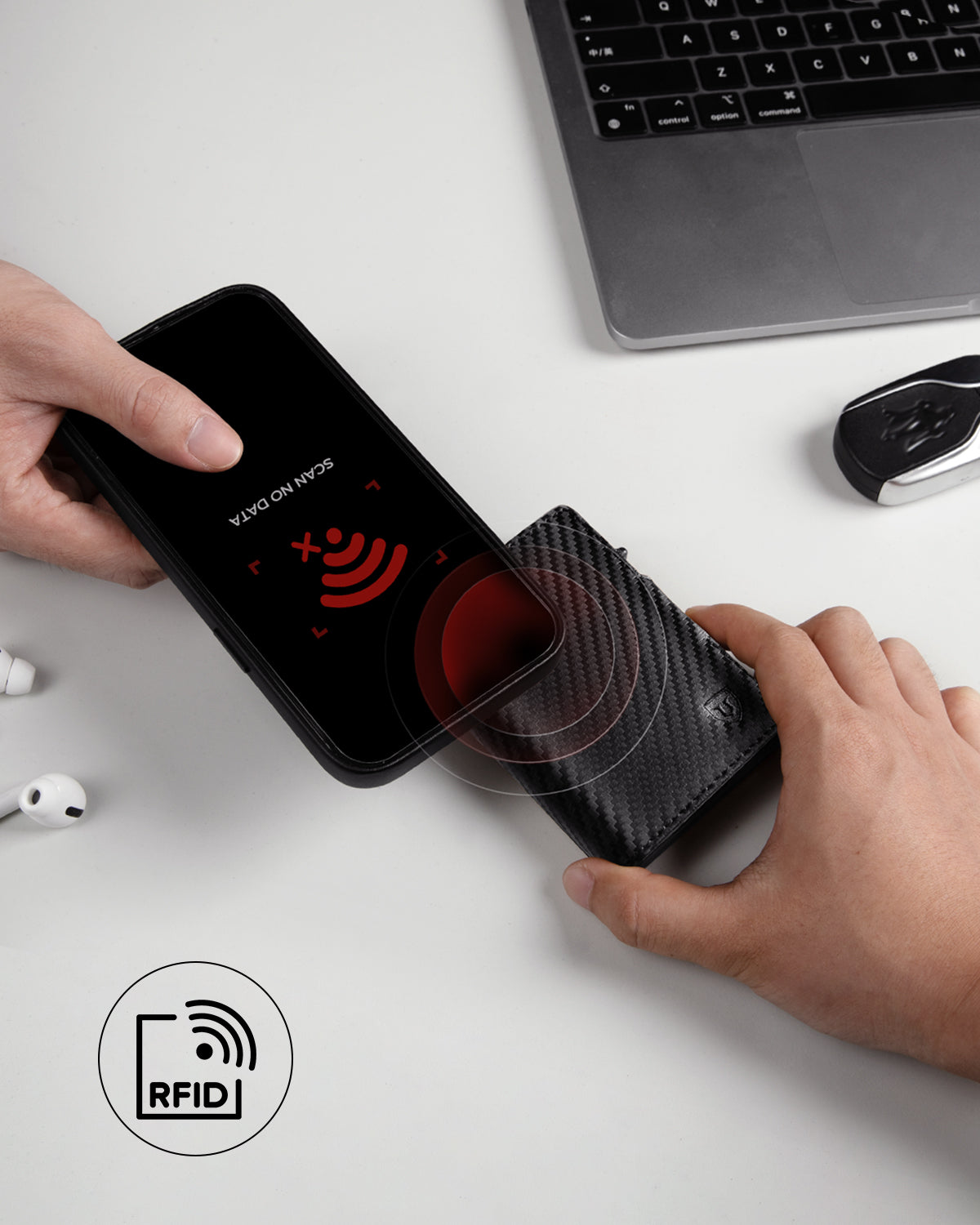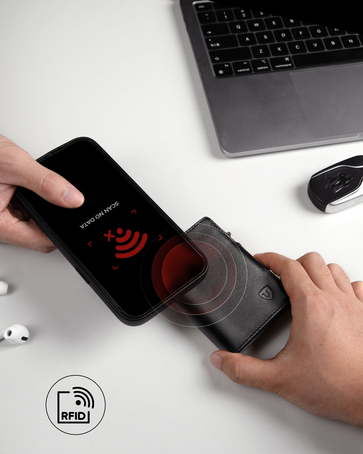 - ✔ SICHERHEIT & DATENSCHUTZ – Unsere RFID-Abschirmtechnologie sichert Ihre Kreditkarteninformationen. Mit unserem Slim Wallet und dem hochmodernen RFID-Blocker sind unbefugter Zugriff und Datendiebstahl effektiv blockiert. Vertrauen Sie auf unsere geprüfte RFID-Sicherheitstechnologie und genießen Sie weltweit Sicherheit und Privatsphäre.