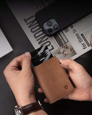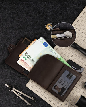 Slim Wallet mit Münzfach Druckknopf & RFID-Schutz I Leder Geldbeutel I Mini Geldbörse Herren I Geldbeutel Klein Portmonee Portemonnaie Klein I Kreditkartenetui Kartenetui Kartenhalter I Braun Vintage