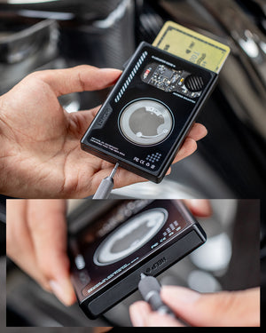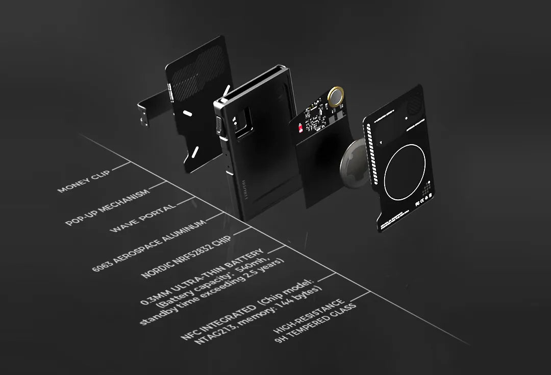 We embedded a 0.3mm ultra-thin battery with 540mAh capacity into the cardholder, ensuring over 2.5 years of battery life without bulk. To tackle signal interference from metal and carbon fiber, we used tempered glass and fine-tuned the antenna, optimizing tracking functionality while minimizing signal loss.