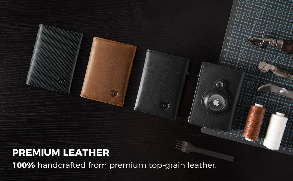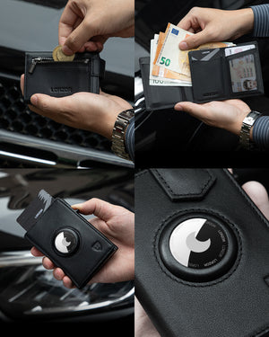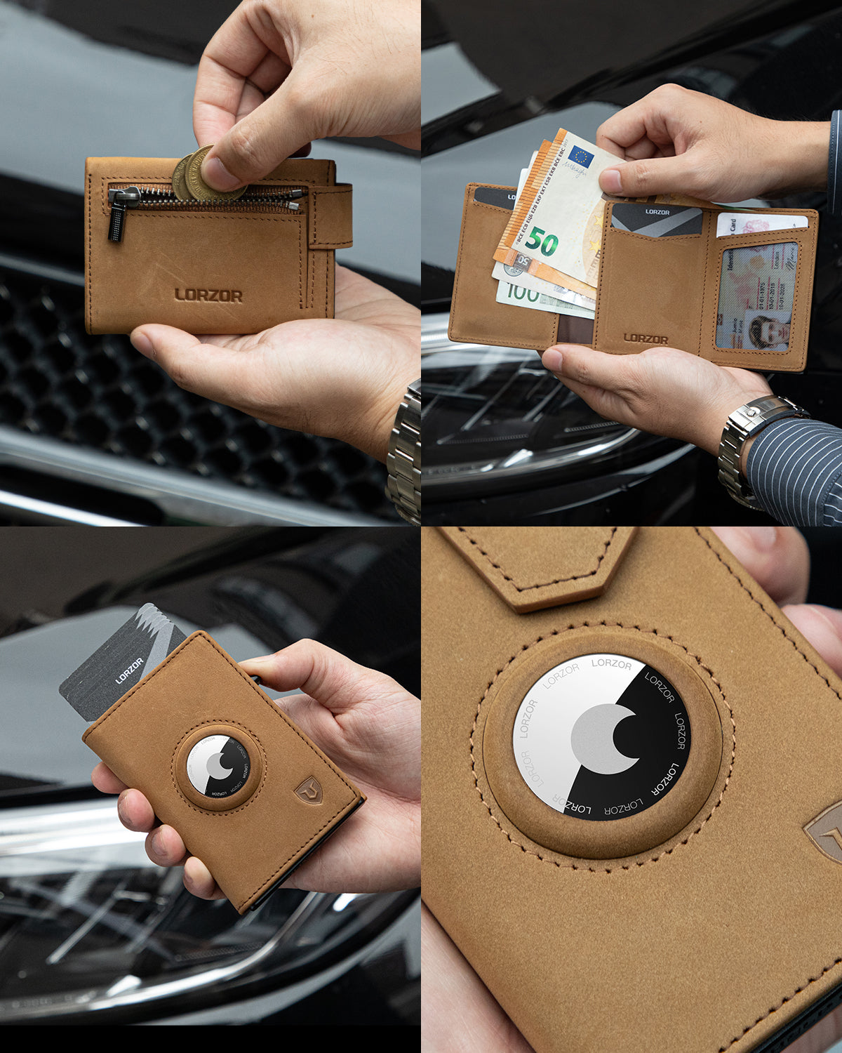 Designed formodern men!Our Air Tag wallet made from softpremium leather and built to last long, Each of our aluminum card wallet has unique details thatage beautifully along with you!