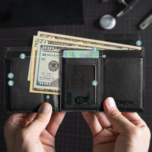 LORZOR wallet impressively holds a large number of cards and cash while maintaining a sturdy, well-built construction. Comfortably holding 8-10 cards and bills.