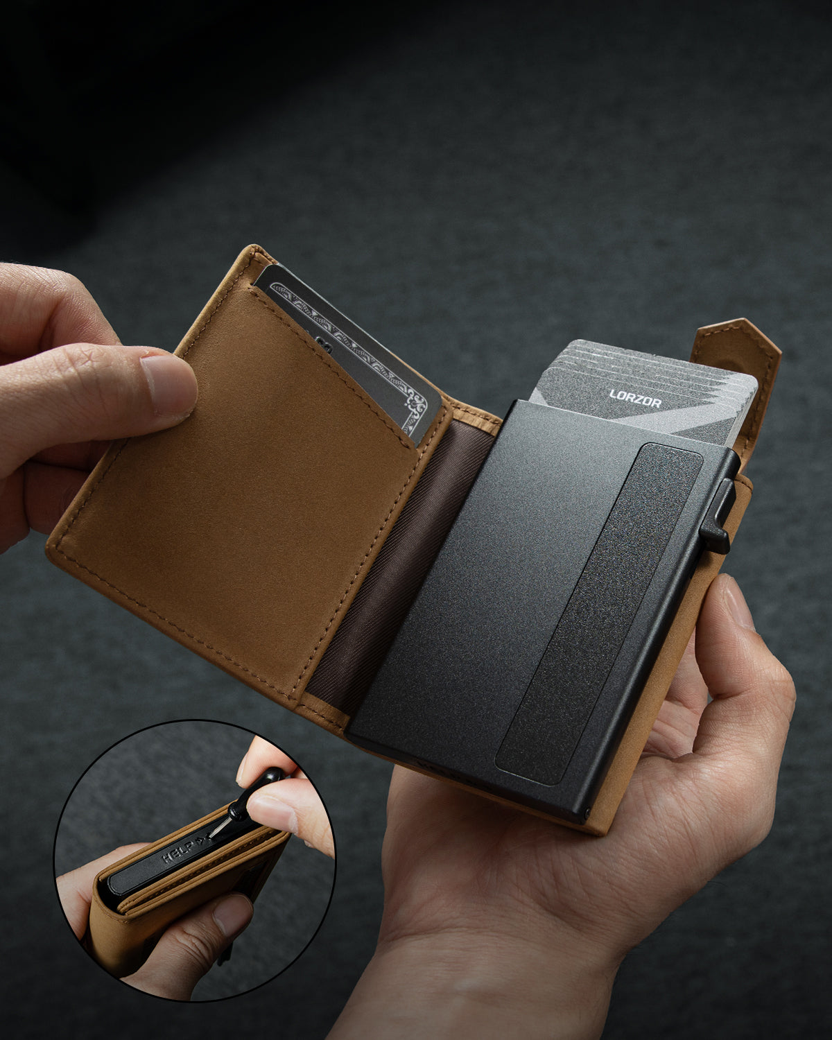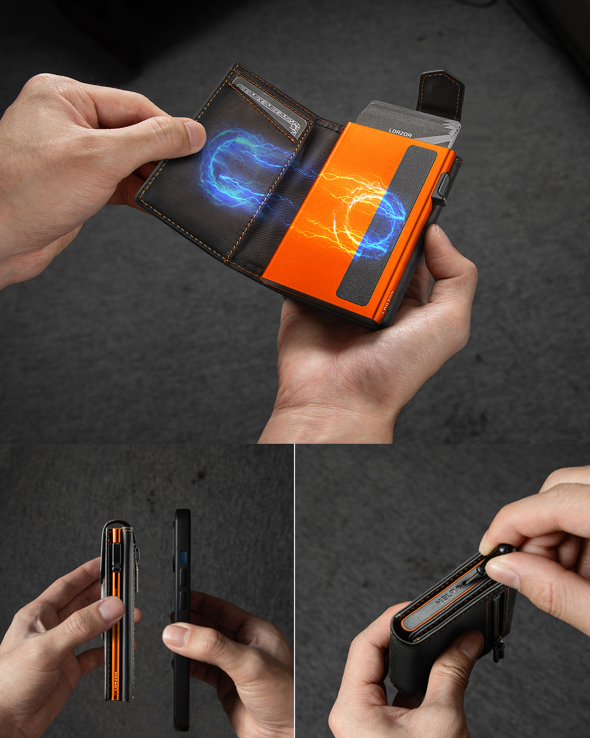 LORZOR Pop up Air Tag Wallet design with integratedRFID blockingtechnology safeguards your cards from skimmers, keeping you protected against the growing risk of electronic pickpockets.It's especially useful for people on the go or travel a lot.