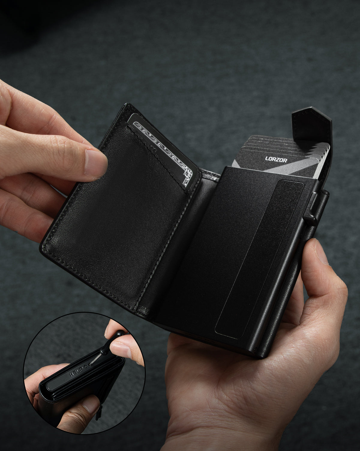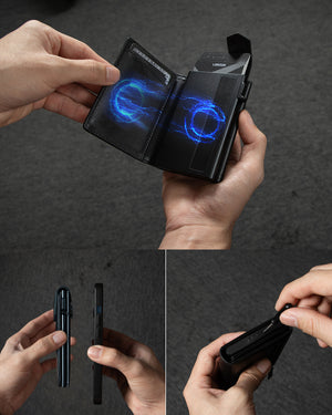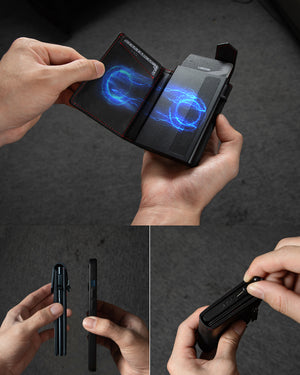 Experience Ultimate Convenience with our Slider Aluminum Wallet's Innovative Front Pocket Design. Your essentials are now at your fingertips for quick and easy access, making this wallet the perfect choice for an on-the-go lifestyle. Say goodbye to fumbling through your wallet, and say hello to effortless organization with the front pocket design.