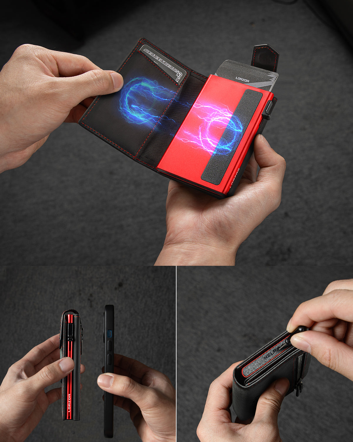 LORZOR card holder wallet adopts the latest hidden magnetic closure design, with two hidden strongest magnets. Compared with the traditional wallet, our card wallet will not open without reason, to prevent change and credit card from falling. Soft touch and anti-theft function both to ensure the security of property and personal information.