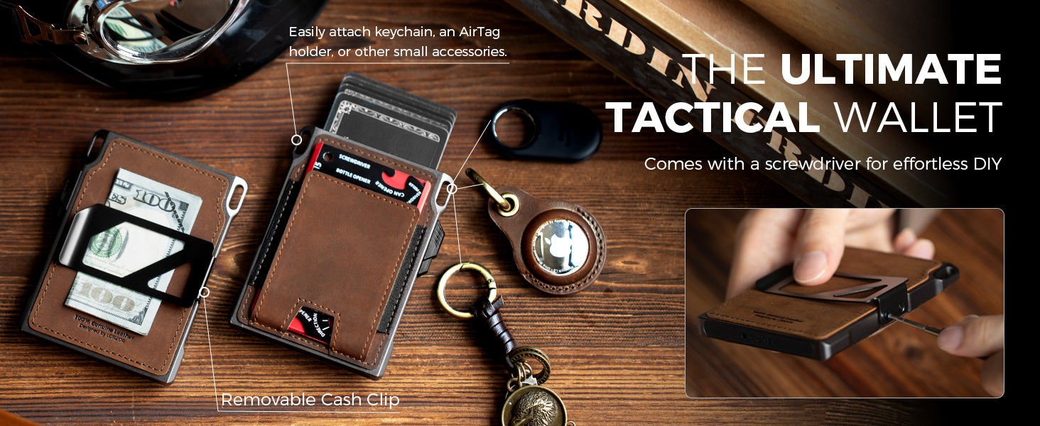 LORZOR Mens Tactical Wallet - Minimalist Full Grain Leather Wallet