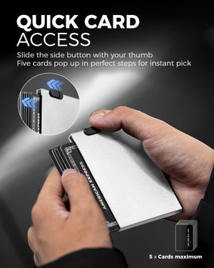 a safety hole at the bottom prevents the card from getting stuck (though this is rare); made of aerospace-grade metal.