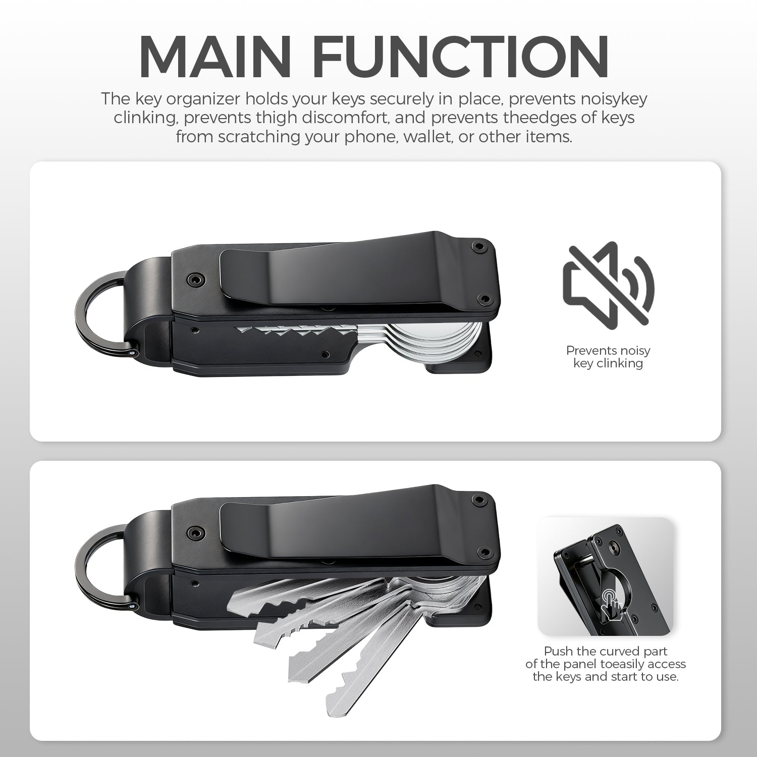 Built around a precision-engineered internal structure, it securely holds 2–6 keys while keeping them silent, organized, and easy to access.