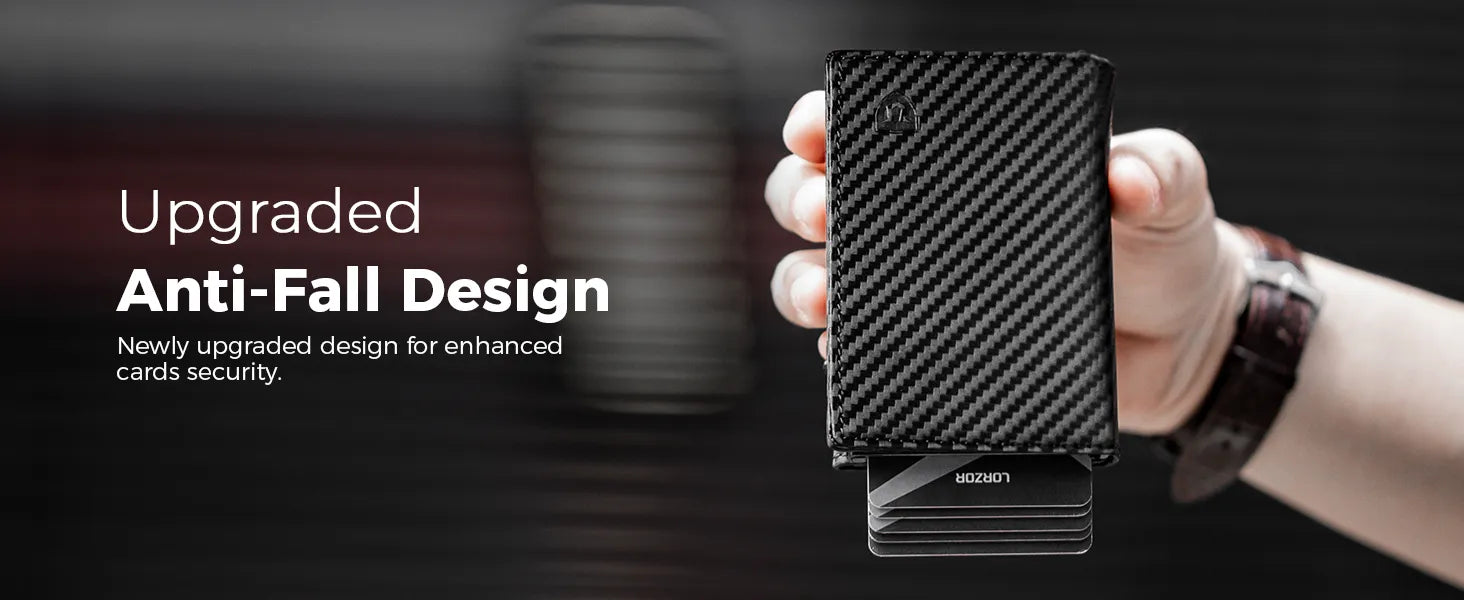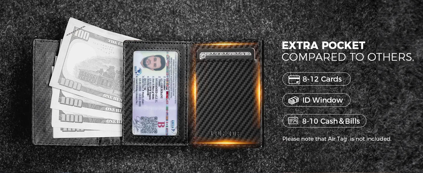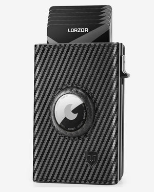 LORZOR-Carbon Fiber Leather Aluminum Slide AirTag Wallet - LORZOR