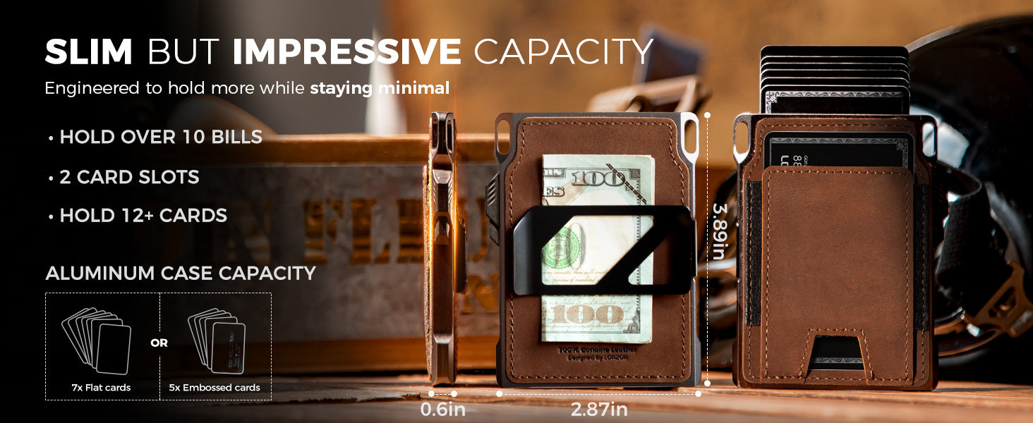 LORZOR Mens Tactical Wallet - Minimalist Full Grain Leather Wallet