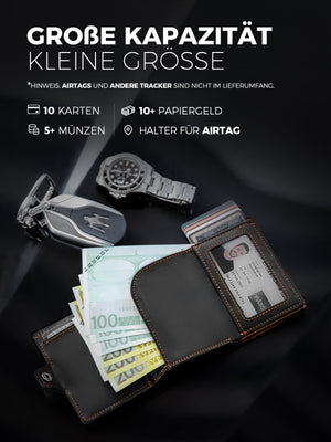 ✔ 360° all-round protection – This slim wallet with a coin compartment has been specially developed for AirTag. (Not including AirTag) Never have to worry about losing your wallet again. Special silicone strips in the card box prevent the cards from falling out, and the integrated RFID protection protects against data stealing. Choose an AirTag wallet from LORZOR and let us protect you.